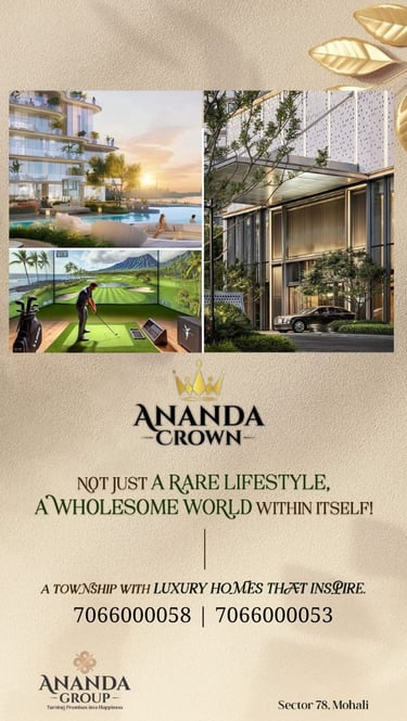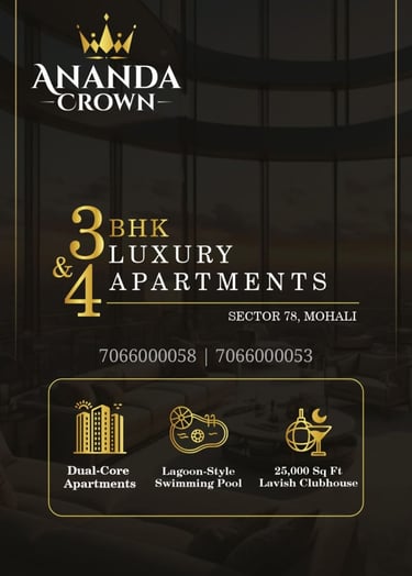 If you are looking for luxury apartments in Sector 78 Mohali, Ananda Crown is the perfect destination. Experience modern living, superior comfort, and a well-connected location—all in one place.