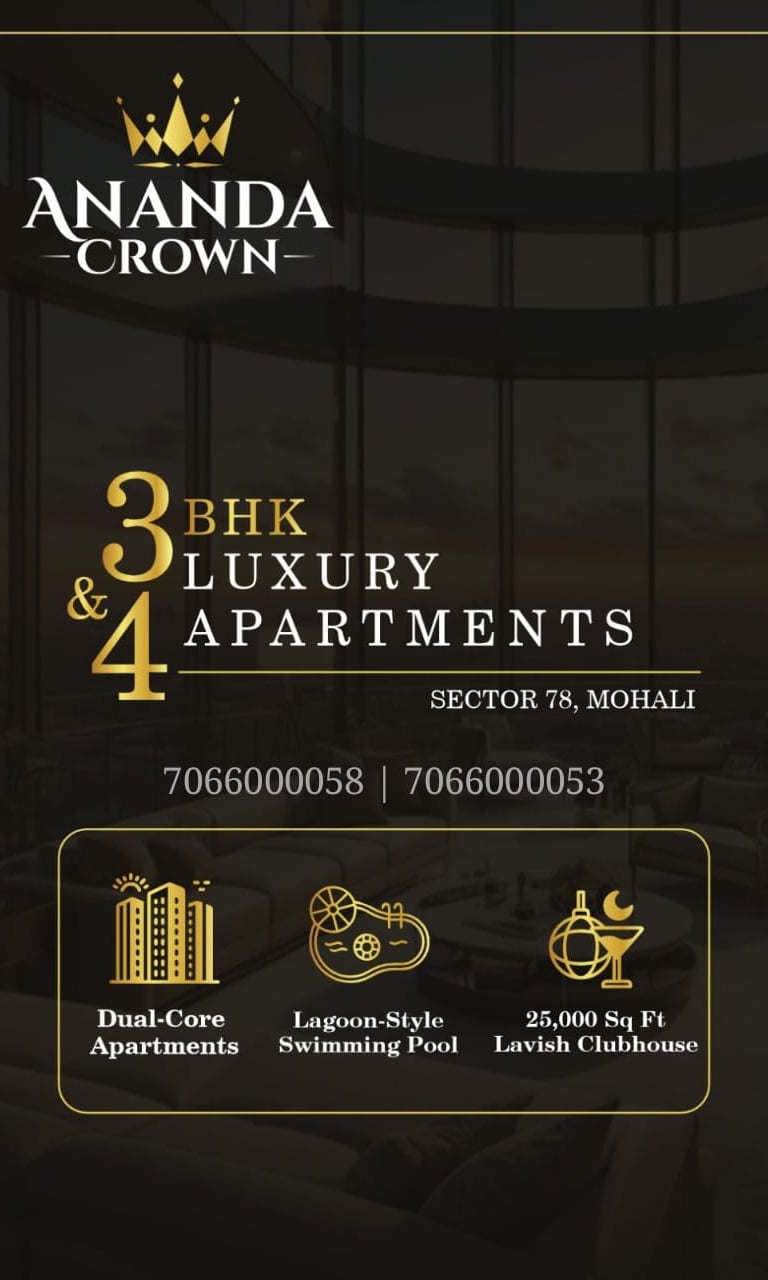 Ananda Crown Sector 78 Mohali is a premium residential project offering modern apartments in one of the most well-planned and fast-growing locations of Mohali. Designed for contemporary urban living, Ananda Crown combines elegant architecture, spacious layouts, and top-class amenities to deliver a comfortable and sophisticated lifestyle.